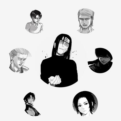| hyuuga neji, levi ackerman, jean kirstein, porco galliard, kirishima ayato, shinya hiiragi, inumaki toge, fushiguro megumi, satoru gojo, ryuguji ken |